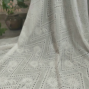 HAPPEAK, tela bordada de gasa de algodón, bordado personalizado con ojales, telas de algodón Lisas para blusa y vestido